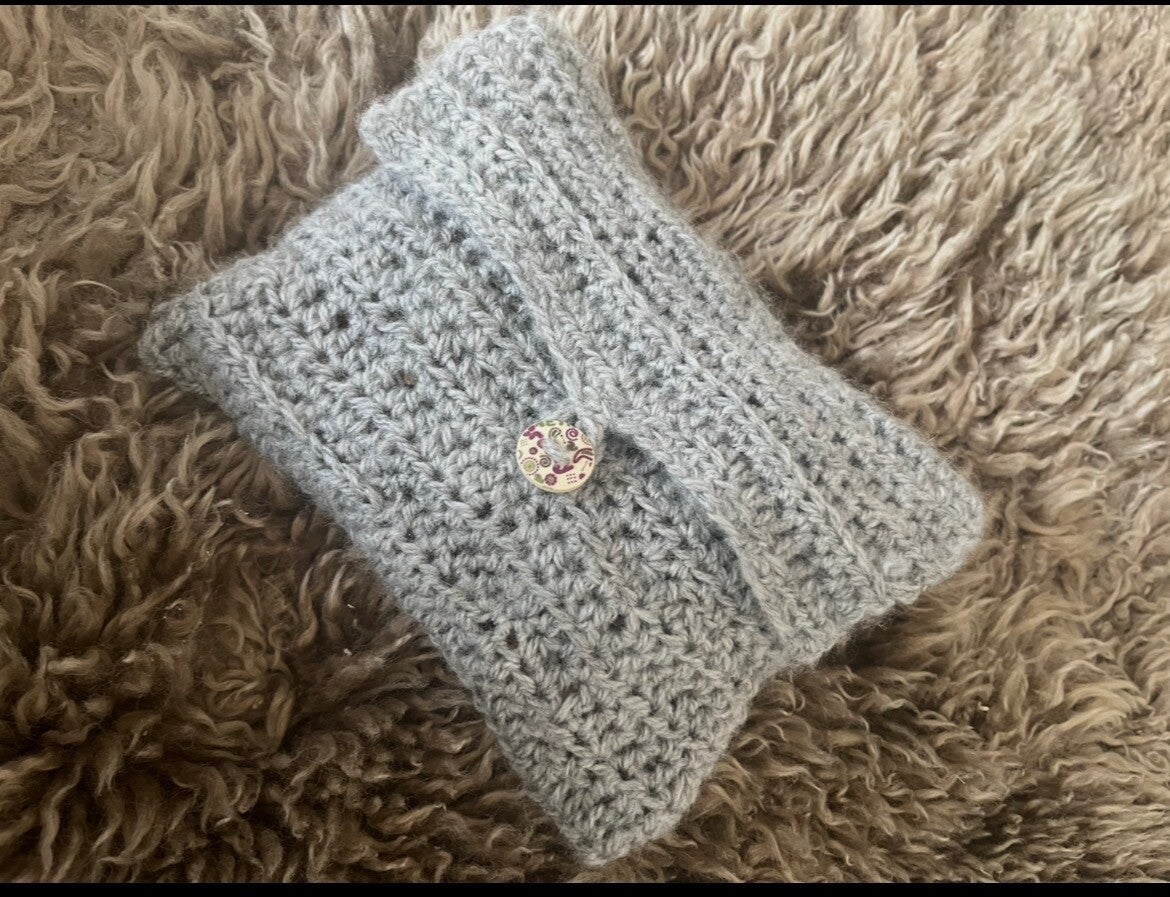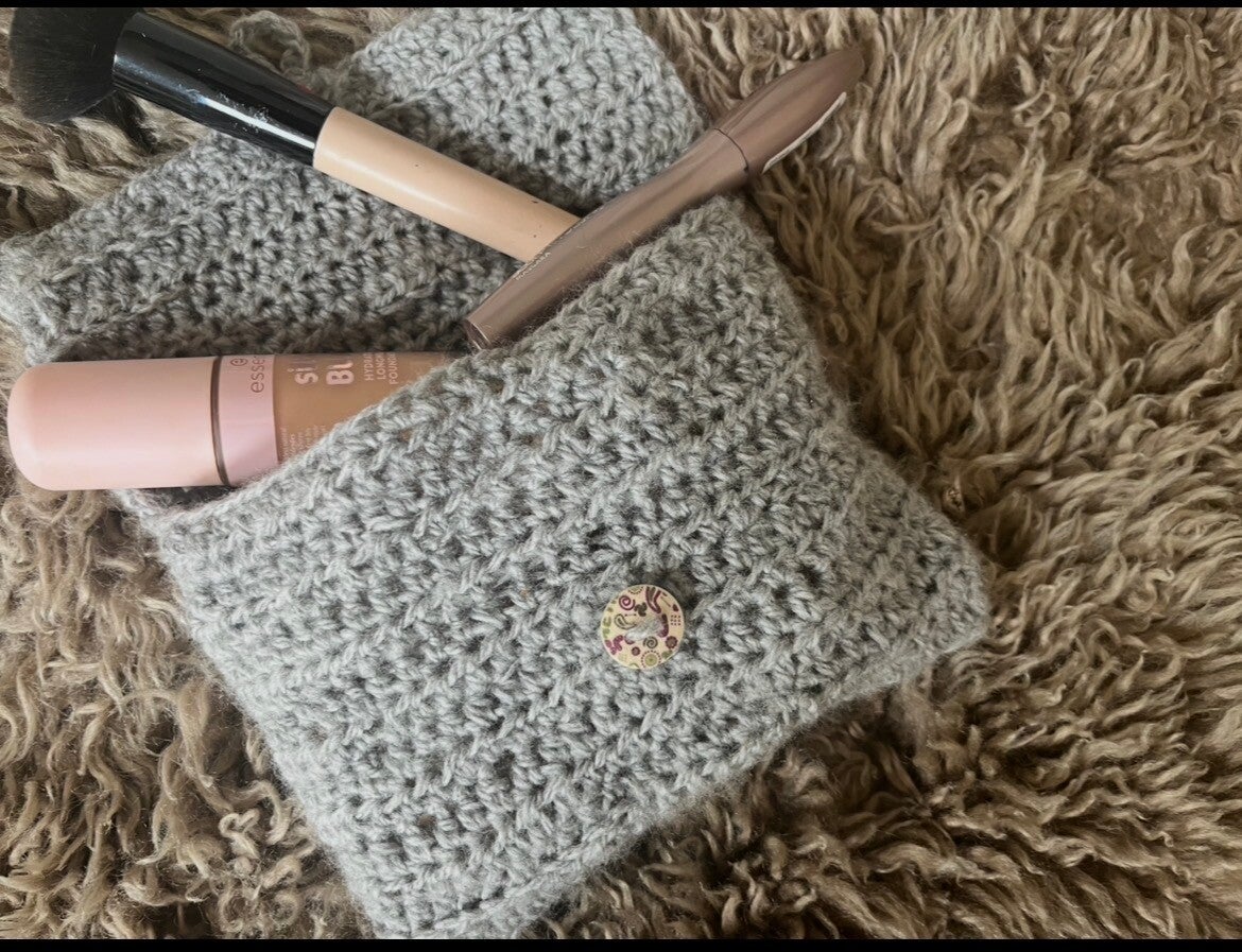 Gehäkeltes Täschchen aus grauer Wolle 20x 17 cm