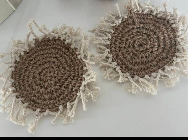Zwei Untersetzer gehäkelt aus Paketschnur